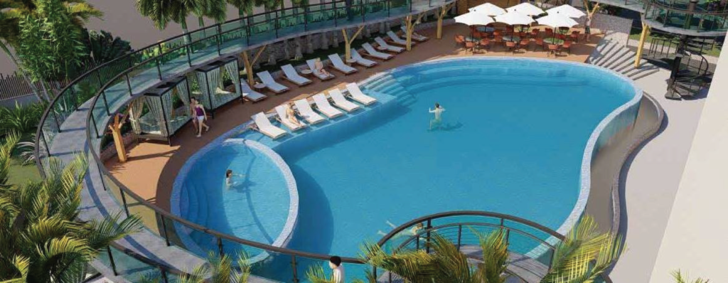 Each home includes a private lift, a private sundeck with a private pool overlooking golf greens, and a dedicated home theatre experience.